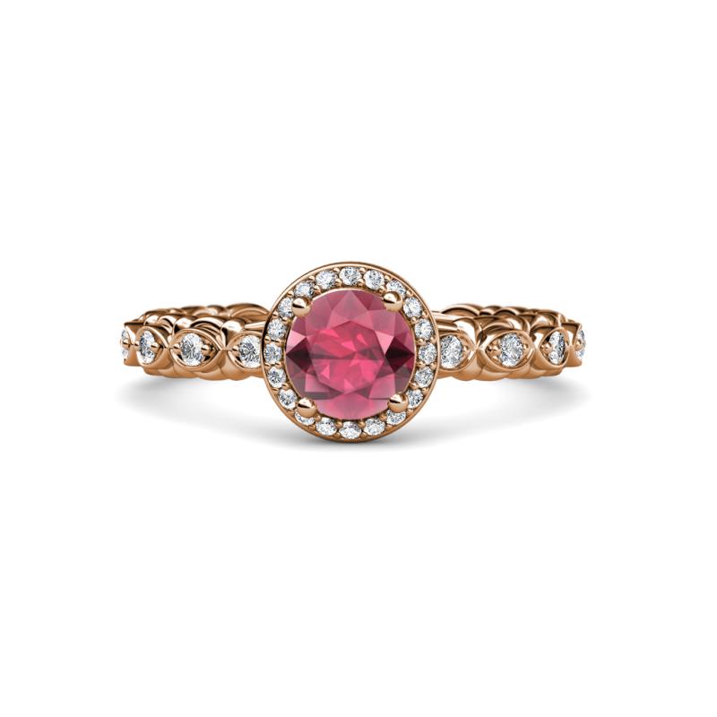 1 1/4 ct Round Rhodolite Garnet and Diamond Cascading Scalloped Shank Womens Halo Engagement Ring 18K Rose Gold More Details ...