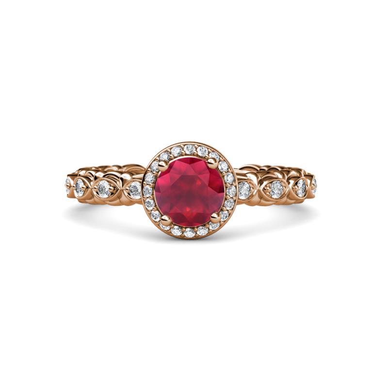 1 1/5 ct Round Ruby and Diamond Cascading Scalloped Shank Womens Halo Engagement Ring 14K Rose Gold More Details ...