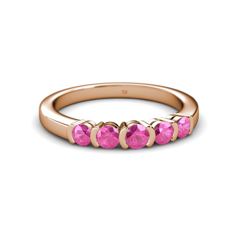 A Wedding Band of 0.80 ctw with Center & Side Stones Round Pink Sapphire is a true everlasting symbol of your love so cherish it with one of a kind band featuring Half Bezel set 5 Stone Wedding Band which shows your lifelong commitment.