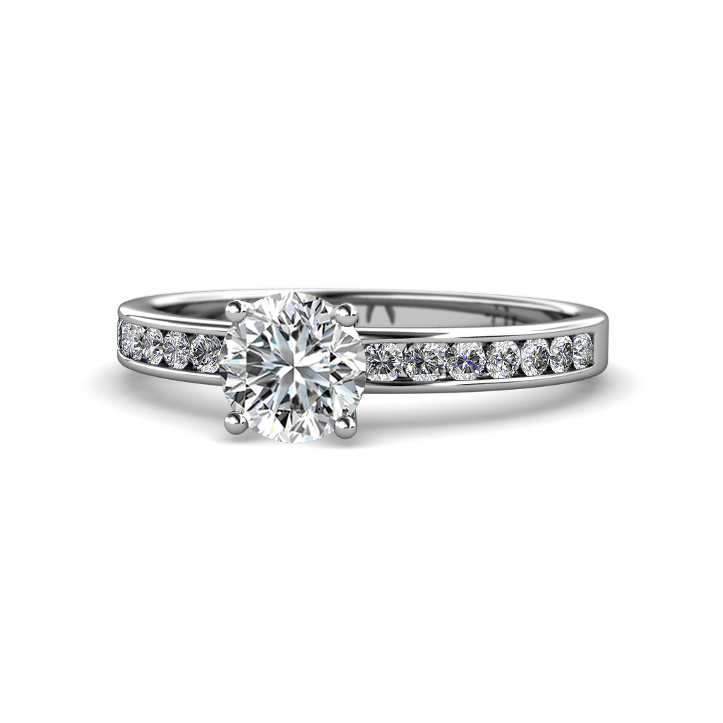This Classic Semi Mount Engagement Ring flashes an elegant drape of Channel Set Round Diamonds half way through the shank that adds sparkle and brilliance to it.