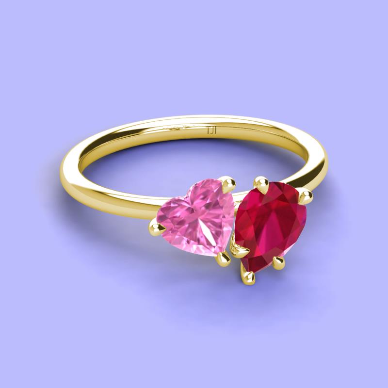Heart & Pear Shape Lab Created Pink Sapphire & Lab Created Ruby 2.53 ctw Four Prong Womens 2 Stone Duo Engagement Ring 10K Yellow Gold More Details ...