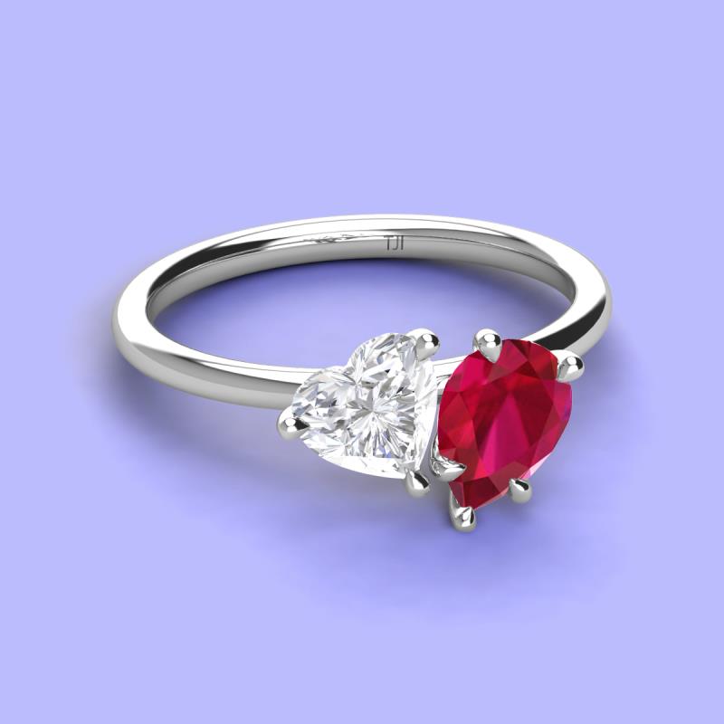 Heart & Pear Shape Lab Created White Sapphire & Lab Created Ruby 2.53 ctw Four Prong Womens 2 Stone Duo Engagement Ring 18K White Gold More Details ...