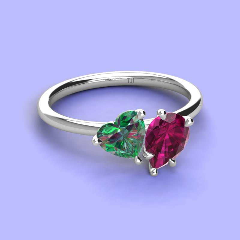 Heart Shape Lab Created Alexandrite & Pear Shape Rhodolite Garnet 2.20 ctw Four Prong Womens 2 Stone Duo Engagement Ring 18K White Gold More Details ...