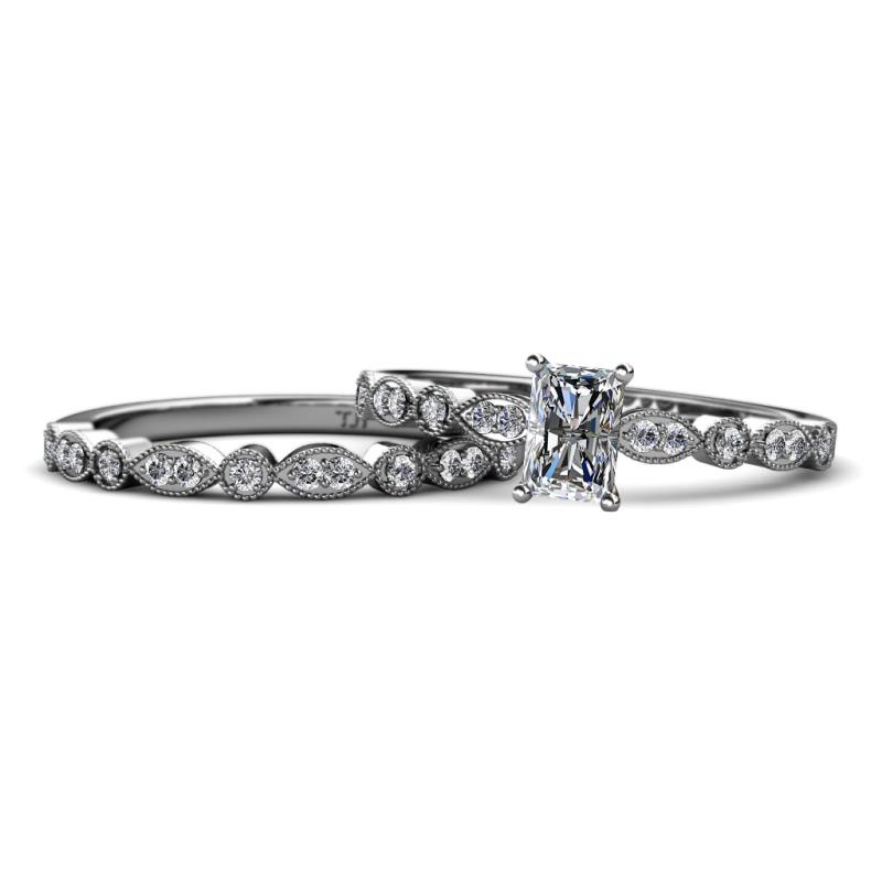 Treat your Love with this exceptional Semi Mount Engagement Ring & Wedding Band where the Diamonds are nested in swirls forming an alternate marquise and Dot design with Milgrain work on the edges.