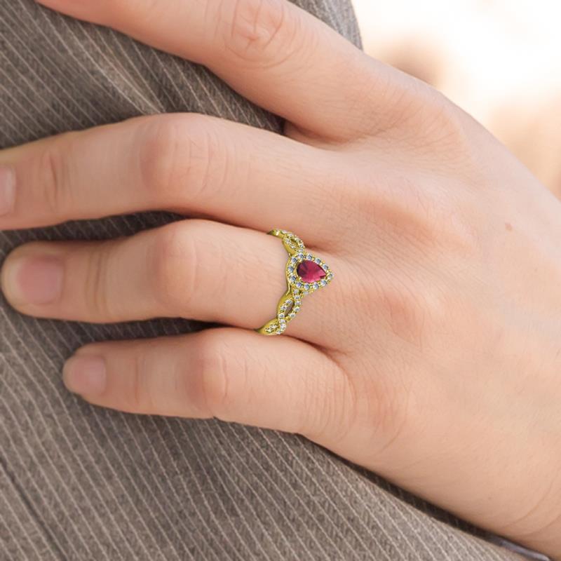 Pear Cut (6x4 mm) Rhodolite Garnet and Diamond Infinity Womens Halo Engagement Ring 1.03 ctw 18K Yellow Gold More Details ...