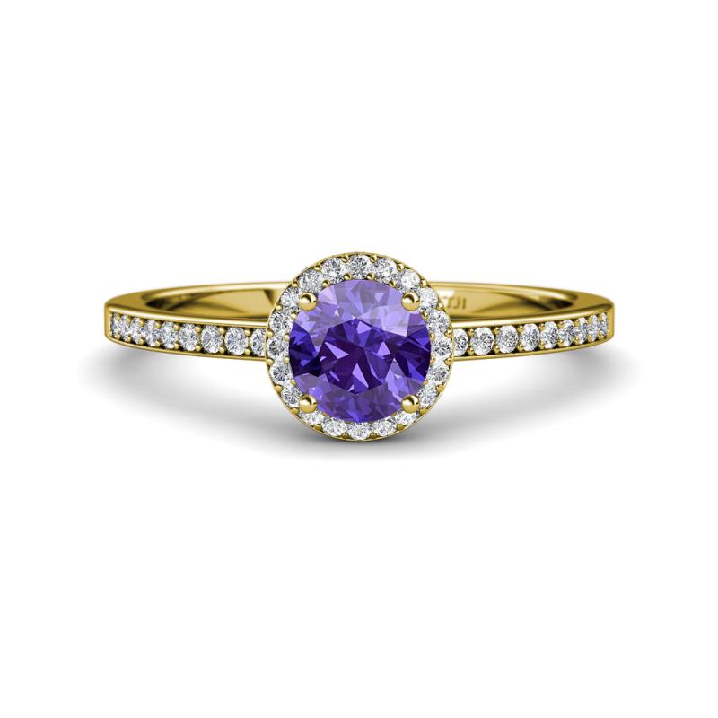 • 60 Round Diamond of 0.45 ctw/1.2 mm and 1 Round Iolite of 0.87 ct/6.5 mm set using Prong Setting.