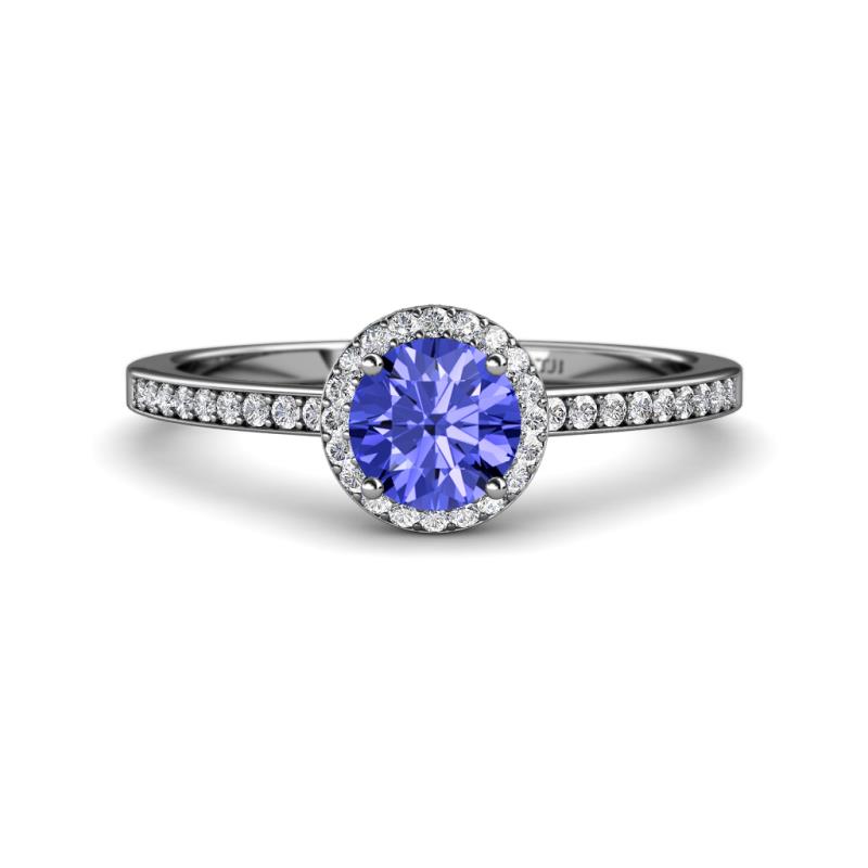 1 3/8 ctw Round Tanzanite and Diamond Womens Halo Engagement Ring 18K White Gold More Details ...