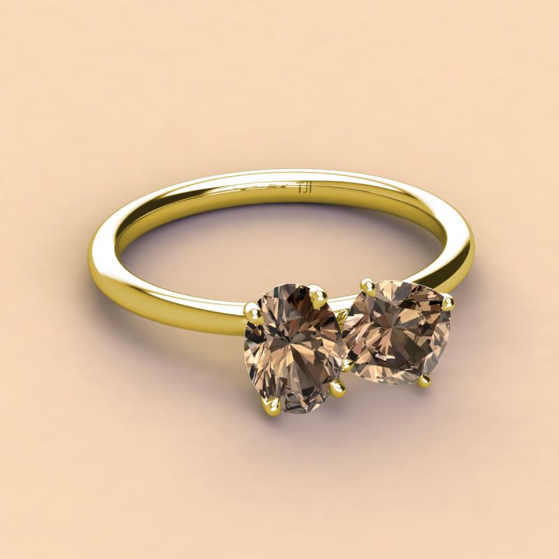 Oval & Cushion Shape Smoky Quartz 2.40 ctw Four Prong Womens 2 Stone Duo Engagement Ring 18K Yellow Gold More Details ...