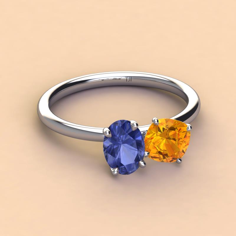 Two-stone Duo ring featuring an Oval shape Iolite and Cushion shape Citrine crafted beautifully that will effortlessly blend with her casual outfits and evening dresses.