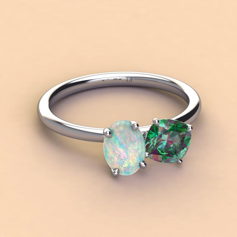 Oval Shape Opal & Cushion Shape Lab Created Alexandrite 1.97 ctw Four Prong Womens 2 Stone Duo Engagement Ring 925 Sterling Silver More Details ...