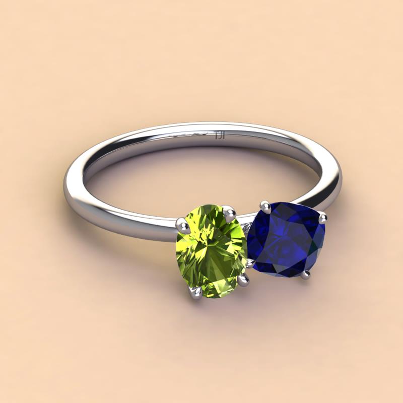 Oval Shape Peridot & Cushion Shape Blue Sapphire 2.60 ctw Four Prong Womens 2 Stone Duo Engagement Ring 14K White Gold More Details ...