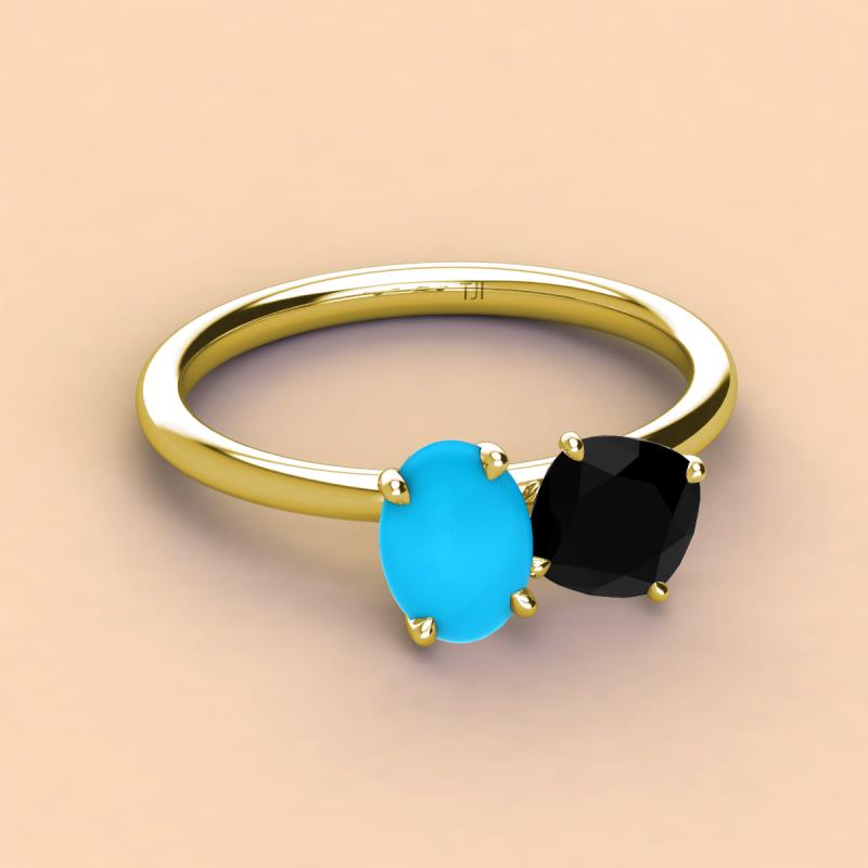 Two-stone Duo ring featuring an Oval shape Turquoise & Cushion shape Black Onyx crafted beautifully that will effortlessly blend with her casual outfits and evening dresses.