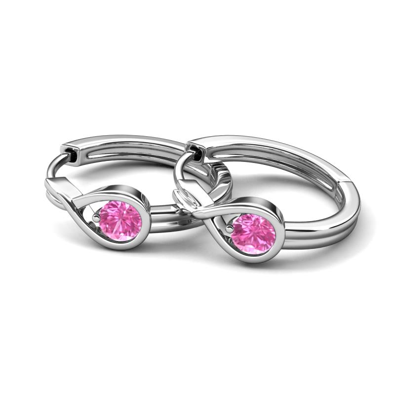 0.53 ctw (4.00 mm) Round Pink Sapphire Infinity Solitaire Women Bezel set Hoop Earrings in 14K White Gold More Details ...