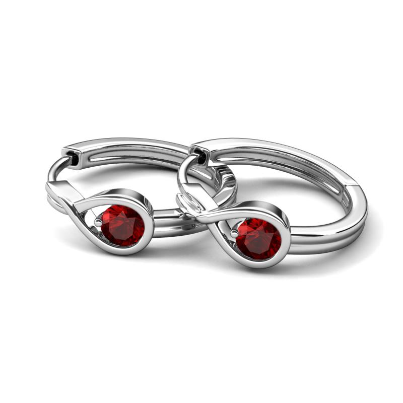0.63 ctw (4.00 mm) Round Red Garnet Infinity Solitaire Women Bezel set Hoop Earrings in 14K White Gold More Details ...