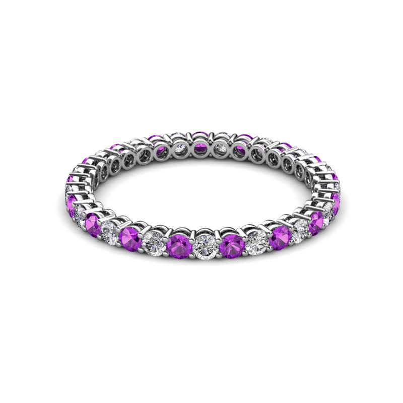 Perfect combination of Elegance and Beauty, this spectacular Eternity Band has Shared Prong set Amethyst and Diamond with side gallery design that exude sheer brilliance and is highly flattering on the hand.