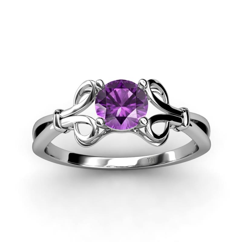 This 1.00 ct Solitaire Ring presents prong set Amethyst surrounded in an Elegant drape of Floral Motif making it more Graceful in its Simplicity.