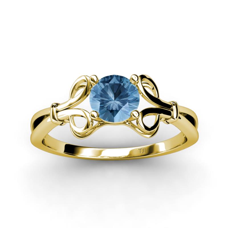 This 1.05 ct Solitaire Ring presents prong set Blue Topaz surrounded in an Elegant drape of Floral Motif making it more Graceful in its Simplicity.