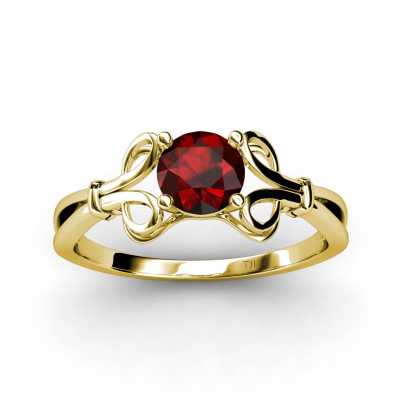 This 1.05 ct Solitaire Ring presents prong set Red Garnet surrounded in an Elegant drape of Floral Motif making it more Graceful in its Simplicity.
