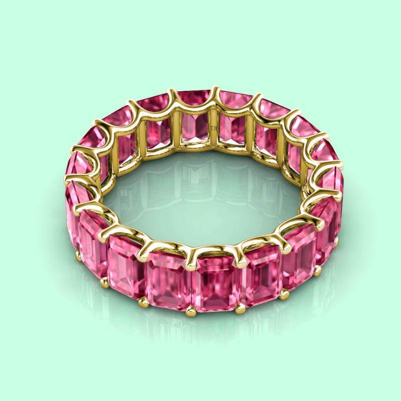 Emerald Cut (6x4 mm) Pink Tourmaline 9.60 ctw* Womens Eternity Ring Stackable 18K Yellow Gold More Details ...