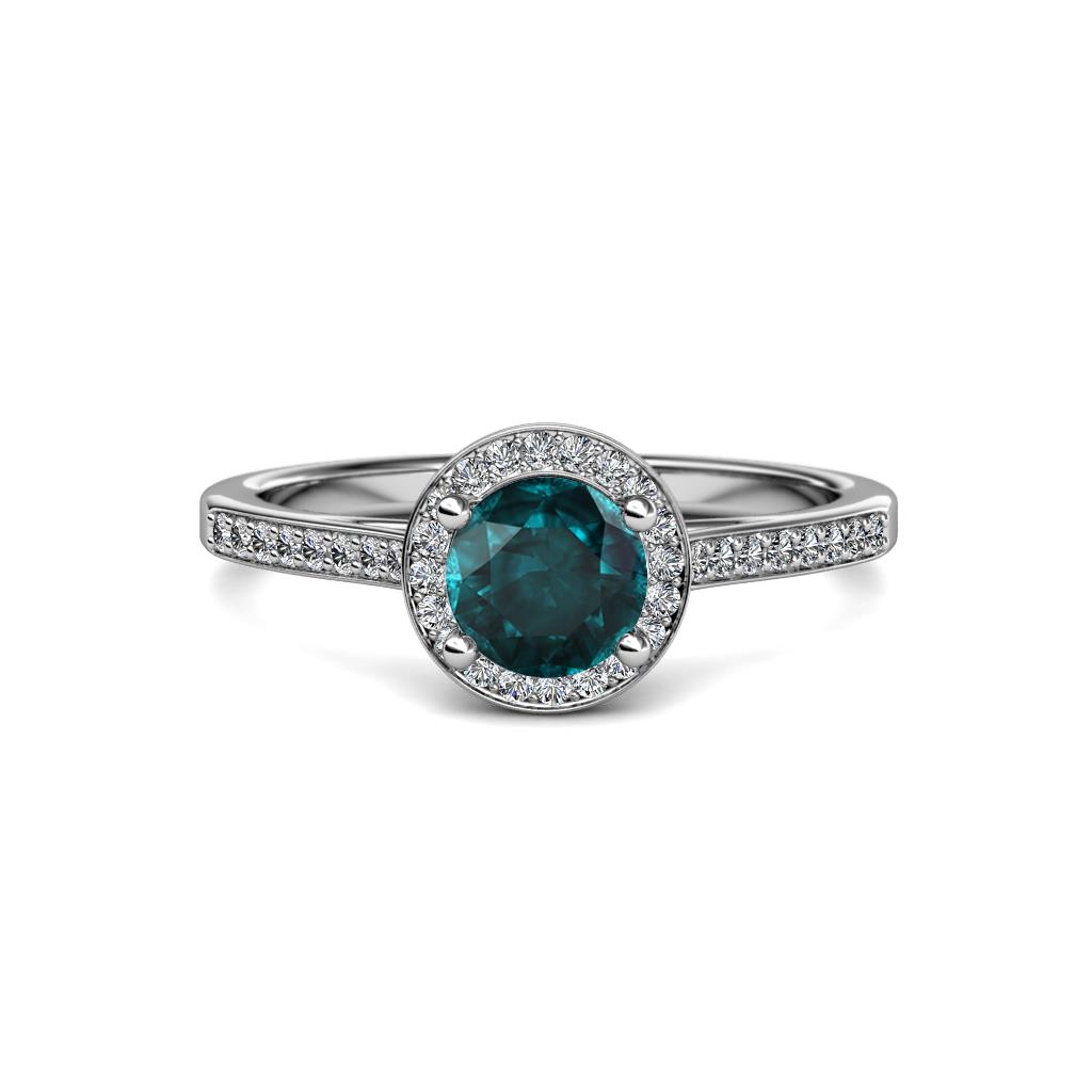 1 1/4 ctw Round London Blue Topaz and Diamond Womens Halo Engagement Ring 18K White Gold More Details ...