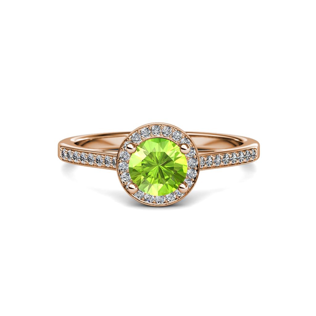 1 2/5 ctw Round Peridot and Diamond Womens Halo Engagement Ring 14K Rose Gold More Details ...