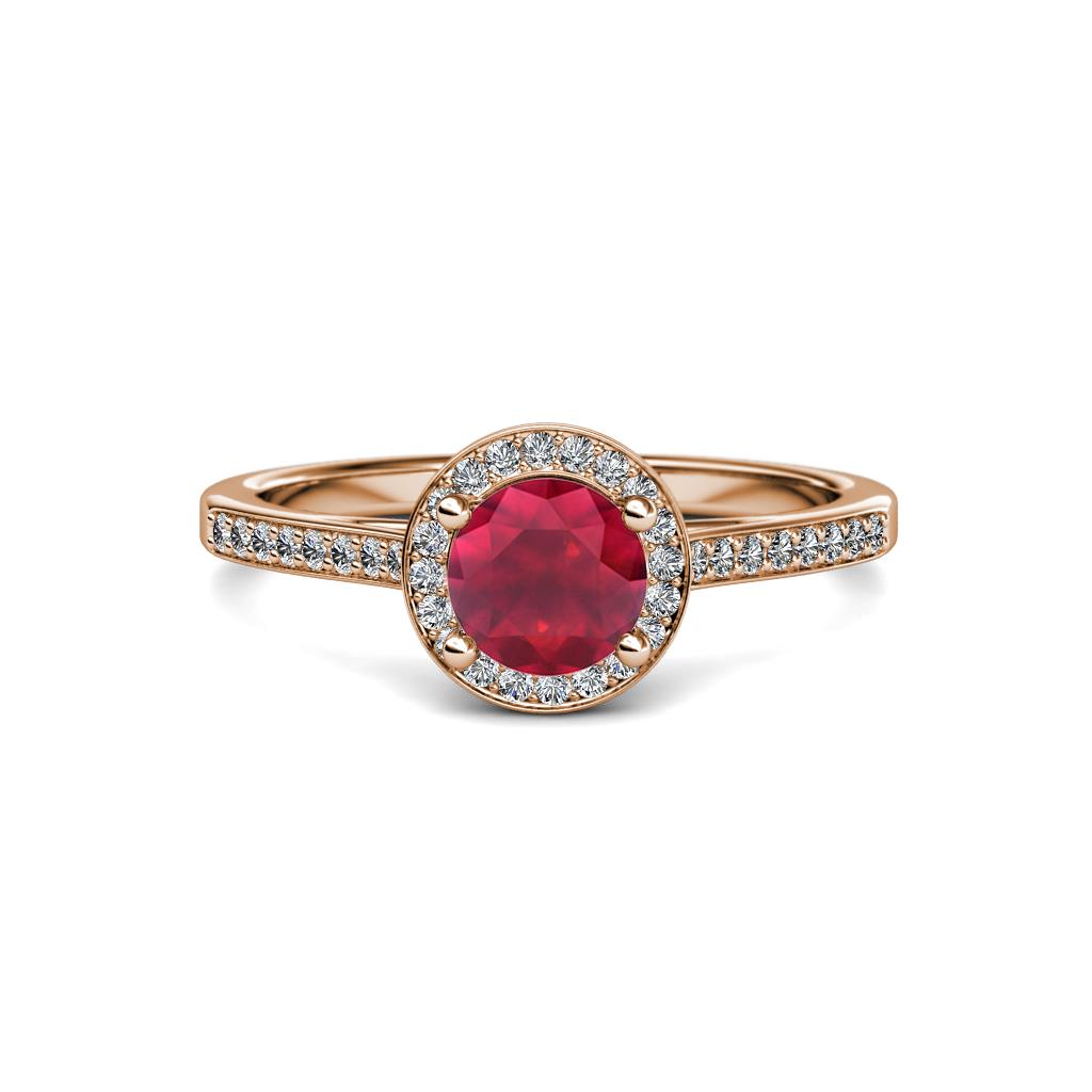 1 1/4 ctw Round Ruby and Diamond Womens Halo Engagement Ring 18K Rose Gold More Details ...