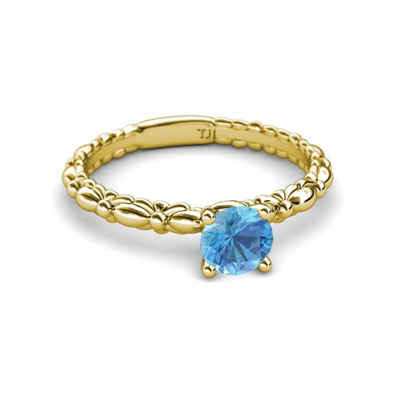 • 1 Round Blue Topaz of 0.95 ct/6.5 mm set using Prong Setting in 14K Yellow Gold.