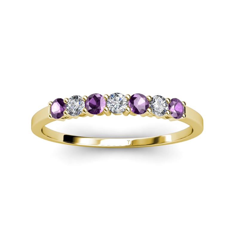 Amethyst and Lab Grown Diamond 0.62 ctw 7 Stone Side Gallery Womens Wedding Band Stackable 18K Yellow Gold More Details ...
