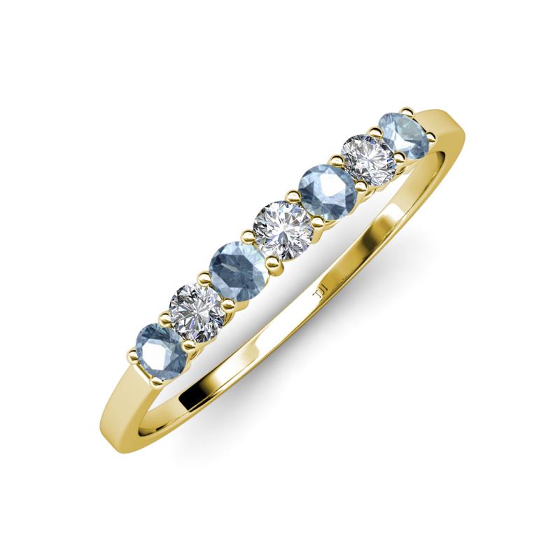 Aquamarine and Diamond 0.62 ctw 7 Stone Side Gallery Womens Wedding Band Stackable 18K Yellow Gold More Details ...