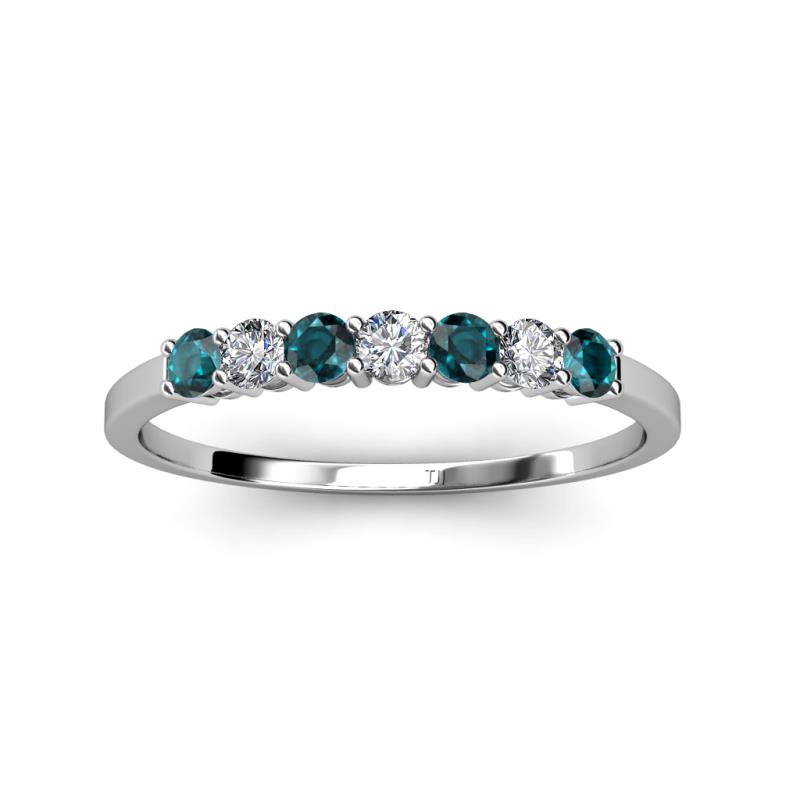 London Blue Topaz and Lab Grown Diamond 0.74 ctw 7 Stone Side Gallery Womens Wedding Band Stackable 18K White Gold More Details ...