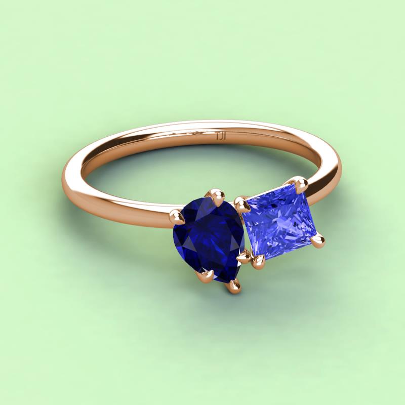 Pear Shape Blue Sapphire & Princess Shape Tanzanite 2.60 ctw Four Prong Womens 2 Stone Duo Engagement Ring 18K Rose Gold More Details ...