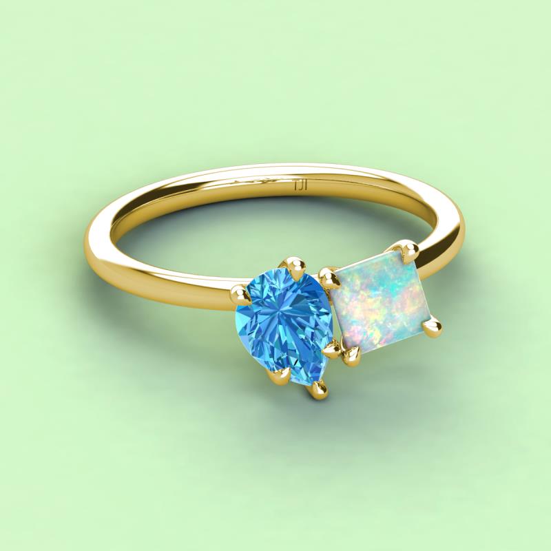 Pear Shape Blue Topaz & Princess Shape Lab Created Opal 2.45 ctw Four Prong Womens 2 Stone Duo Engagement Ring 14K Yellow Gold More Details ...