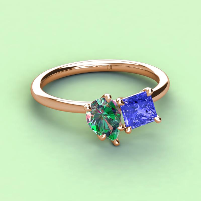 Pear Shape Lab Created Alexandrite & Princess Shape Tanzanite 2.73 ctw Four Prong Womens 2 Stone Duo Engagement Ring 10K Rose Gold More Details ...