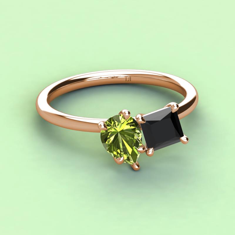 Pear Shape Peridot & Princess Shape Black Diamond 3.00 ctw Four Prong Womens 2 Stone Duo Engagement Ring 10K Rose Gold More Details ...