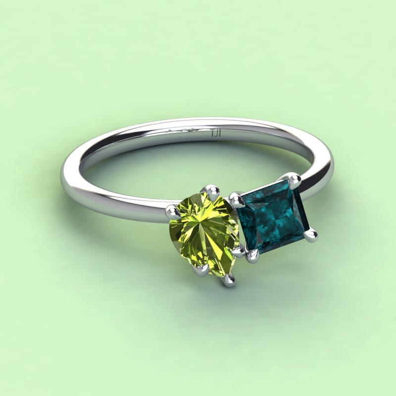 Pear Shape Peridot & Princess Shape London Blue Topaz 2.90 ctw Four Prong Womens 2 Stone Duo Engagement Ring 18K White Gold More Details ...