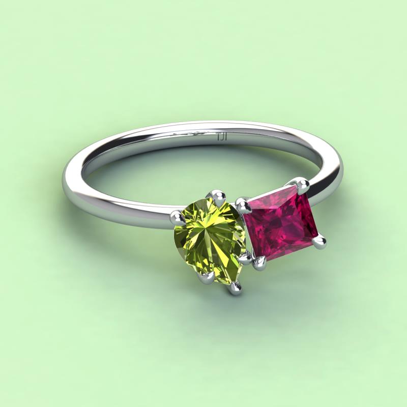 Pear Shape Peridot & Princess Shape Rhodolite Garnet 2.70 ctw Four Prong Womens 2 Stone Duo Engagement Ring 14K White Gold More Details ...