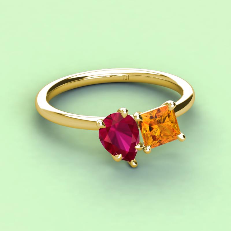 Pear Shape Ruby & Princess Shape Citrine 2.50 ctw Four Prong Womens 2 Stone Duo Engagement Ring 14K Yellow Gold More Details ...